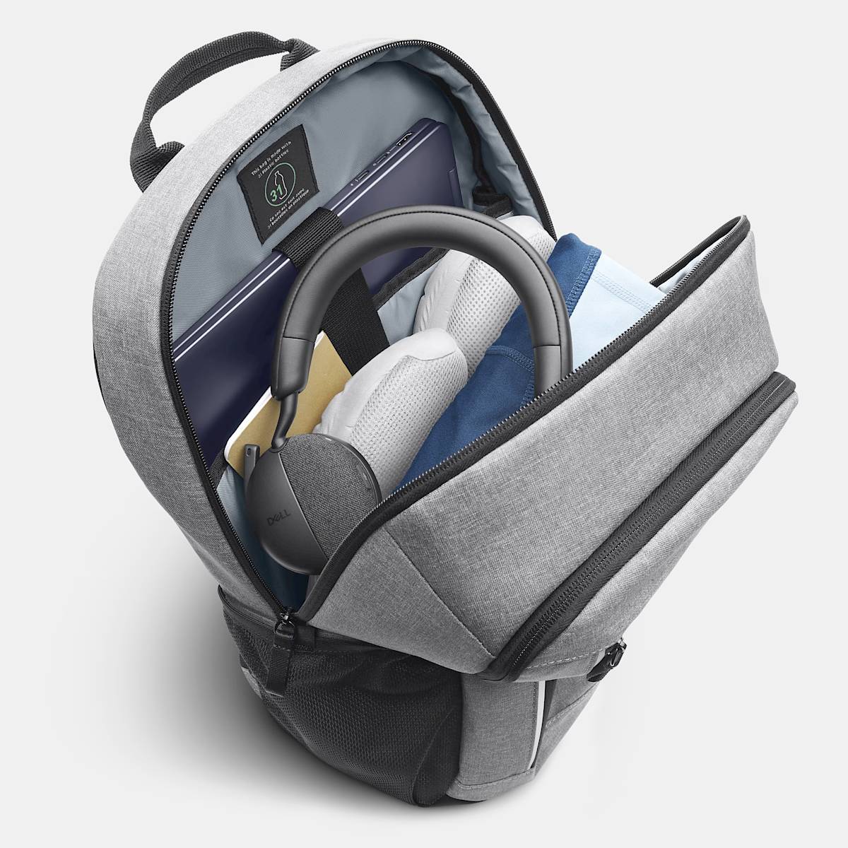Bu sırt çantası, yaklaşık 31 geri dönüştürülmüş plastik şişe kullanılarak %52 geri dönüştürülmüş içerikle üretilmiştir.