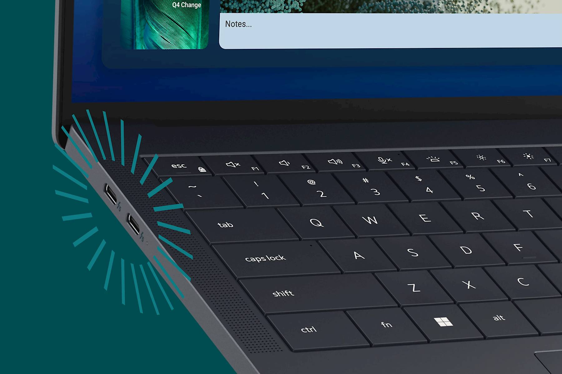 Bu dizüstü bilgisayar, tüketici sonrası geri dönüştürülmüş plastik, geri dönüştürülmüş magnezyum, biyolojik bazlı plastik, geri dönüştürülmüş ve düşük emisyonlu alüminyum ve geri dönüştürülmüş kobalt gibi çok çeşitli malzemelerle tasarlanmıştır.